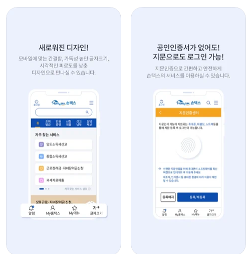 모바일에서 신청하실 분은 국세청 홈택스(손택스) 앱을 설치하여 이용하시면 됩니다. 본인인증은 카카오, 네이버 또는 다른 금융기관 인증을 통해서 쉽게 할 수 있습니다.