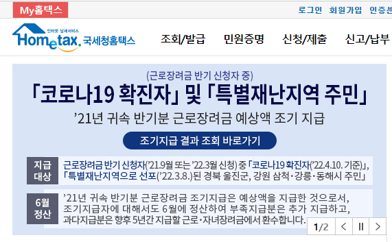 2022 근로장려금 신청 기간이 돌아왔습니다. 5월 1일부터 정기분 신청을 하는데, 신청하러 바로 갈 수 있도록 안내를 하겠습니다.